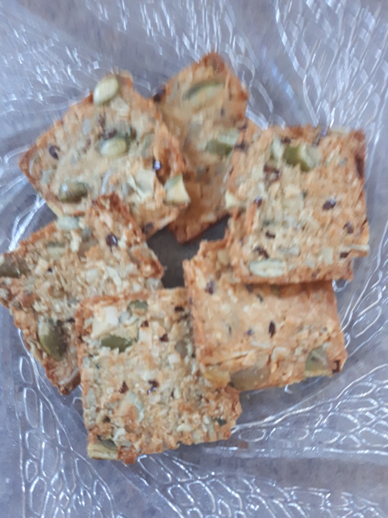 They boast about 4g of net carbs per serving. I am not sure what that means but I think it is important to the keto diet. They are high in fat (probably from the nuts and seeds and the coconut oil. 7g of fat for 5 crackers doesn’t seem like a high number, but if you factor in the size of the cracker and how many you would actually eat at one time, the fat content could really add up. They are 100 calories per serving, 0g of sugar, 3g of protein, and 2 g of fibre. They are also organic and non GMO with no artificial flavours or colours.